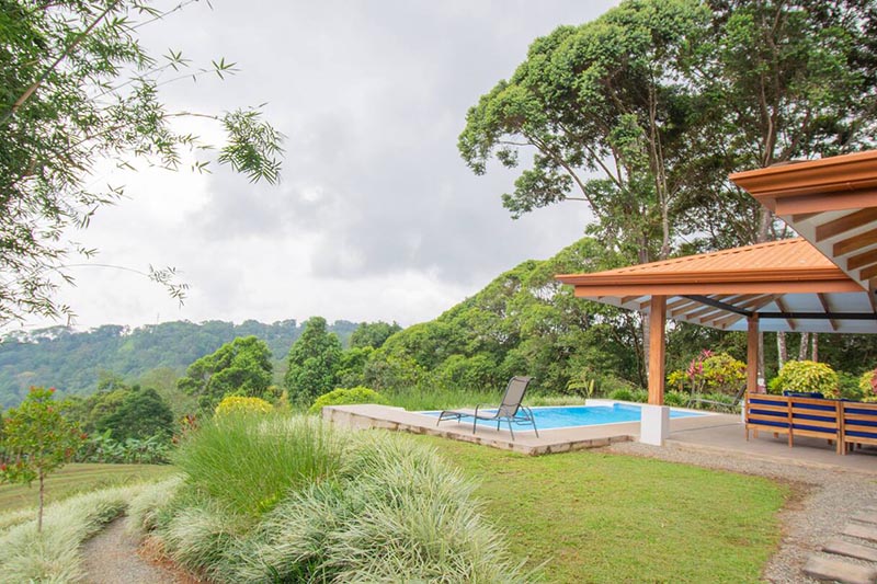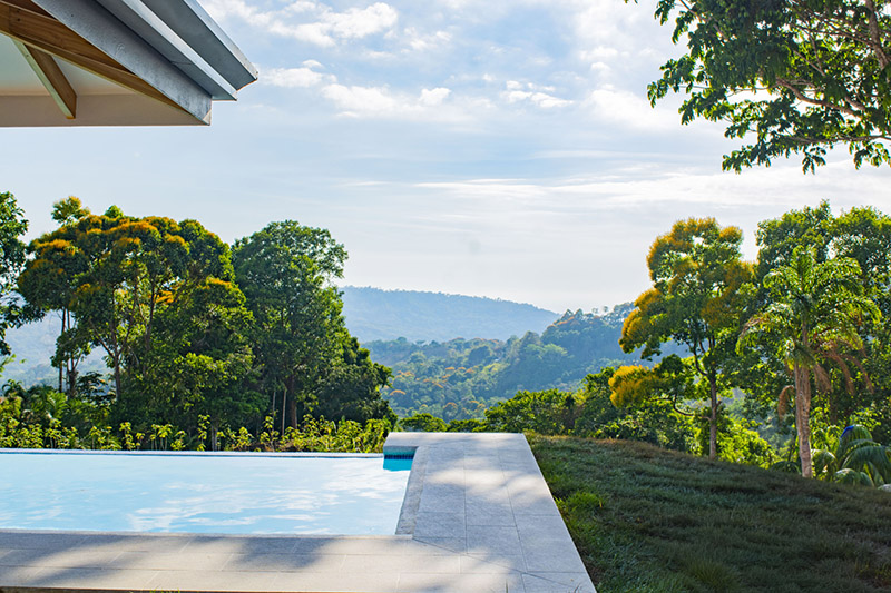 This minimal carbon footprint 3 bedroom villa with expansive infinity pool is situated 400 meters above sea level, offering enjoyably cooler temperatures over what you might find down by the beach (just a quick 15 minute drive away). Enjoy this ideal location where the mountains literally meet the vast Pacific Ocean, and the breezes are nearly infinite. The incredible lushness of this unique mountain coastline area is sometimes compared to Hawaii and other world famous natural meccas.