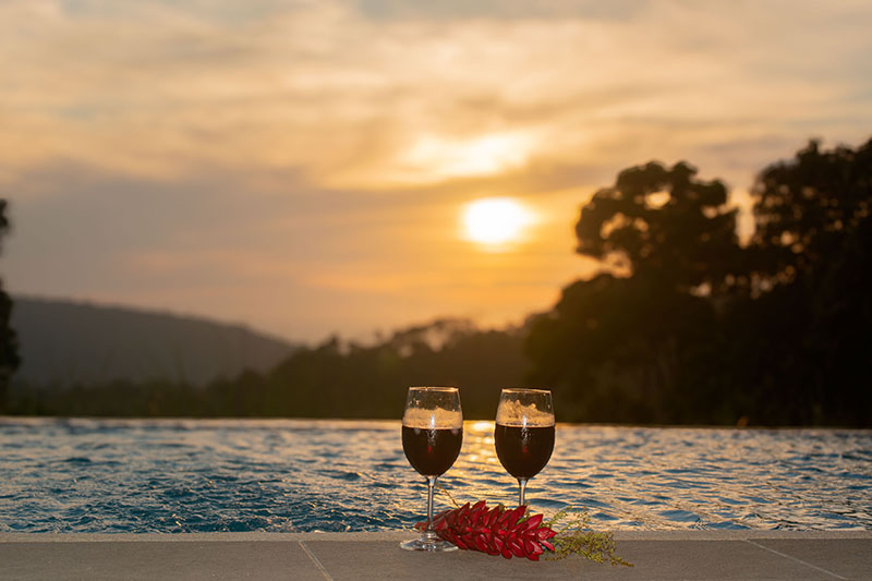 The sleek modern architectural design offers functionality and privacy, and the solid concrete walls do a wonderful job of keeping the elements outdoors where they belong. To soften the overall feel of the place, the villa is accented by hardwoods and solid teak furniture throughout. Large glass windows are found in every room of the villa, offering guests views of the jungle forest and its inhabitants as well as gorgeous mountain and ocean views.