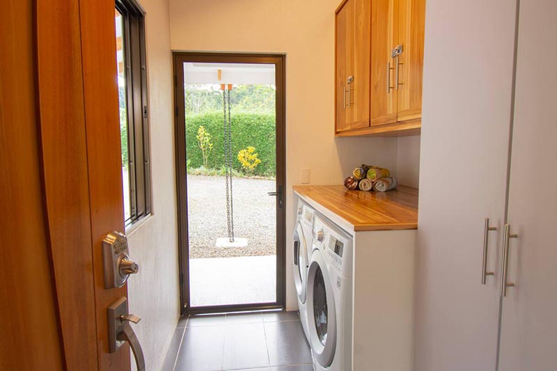 Luxury meets practical with extra amenities that include a premium water filtration system so you can enjoy the delicious drinking water without any worries, a covered car port right by the main entrance to the villa for extra convenience, a separate laundry room with top of the line washer and dryer for guests use, and a covered poolside patio with a stainless steel barbecue for those who like to cook outdoors.